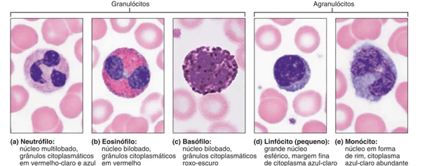 Neutrófilos, eosinófilos, basófilos, linfócitos e monócitos