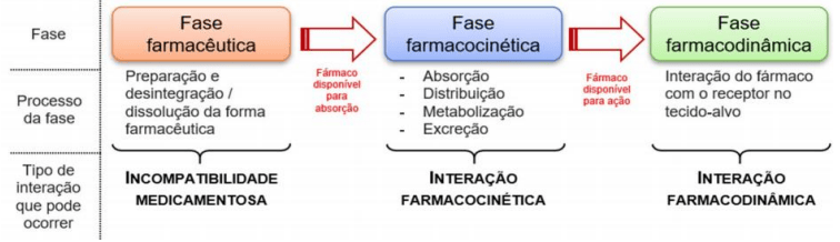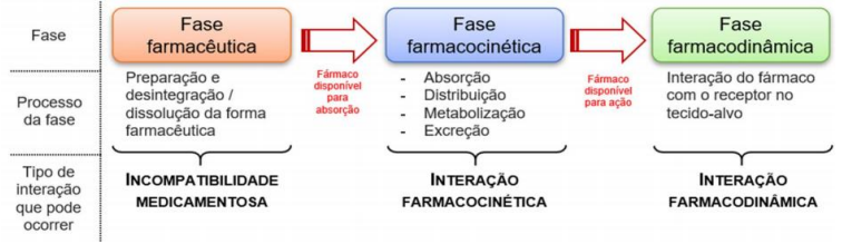 As interações medicamentosas podem ser do tipo relacionadas a farmacocinética e farmacodinâmica (figura 01).