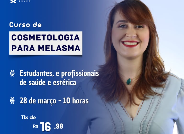 Aproveite esta oportunidade e inscreva-se no nosso curso de cosmetologia para melasma, onde você aprenderá técnicas inovadoras e eficazes para tratar essa condição. Com nossa especialista, você se tornará um profissional que faz a diferença na vida de seus clientes. Não perca tempo, as vagas são limitadas! Comece a mudar vidas agora mesmo!