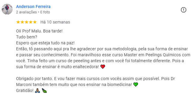 👉 Garanta sua inscrição agora mesmo na mentoria de Peelings e transforme sua carreira com o que há de mais atual na estética. Veja o depoimento abaixo de Anderson sobre sua experiência conosco!!