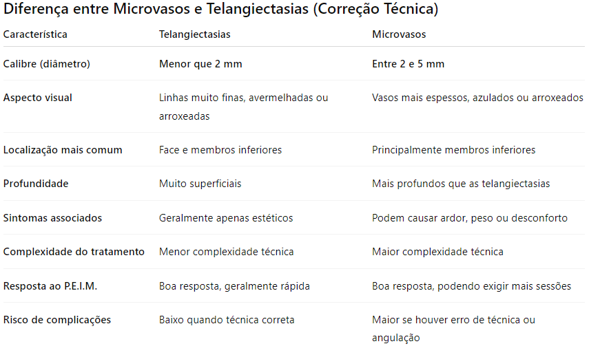 Quadro 01. Diferenças entre microvasos e telangiectasias.