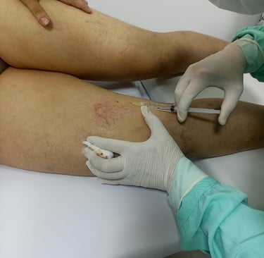 Punções muito profundas atingem o tecido subcutâneo, já superficial demais dificulta a ação do agente. Punções fora do trajeto do vaso ou com angulação incorreta também reduzem a eficácia do procedimento e aumentam o risco de extravasamento da substância. Esse erro está diretamente ligado à falta de prática supervisionada.